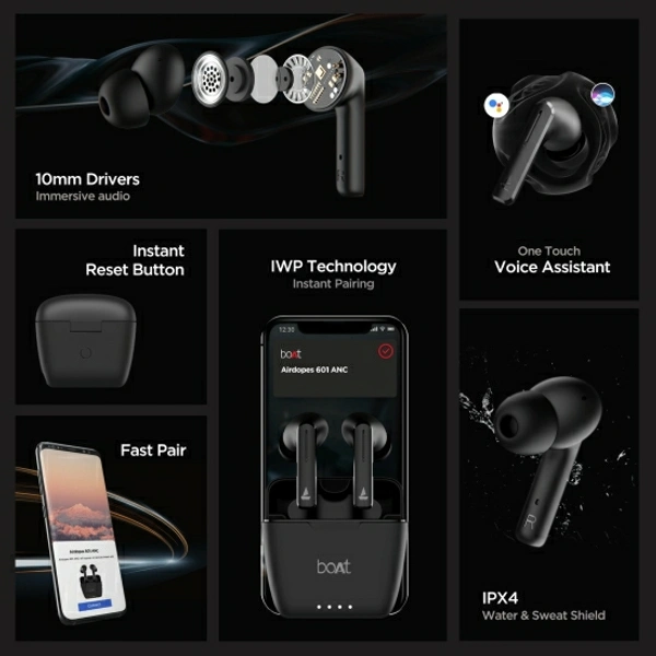 boAt Airdopes 601 ANC with Swipe Controls and 28 Hours Playtime Bluetooth Headset